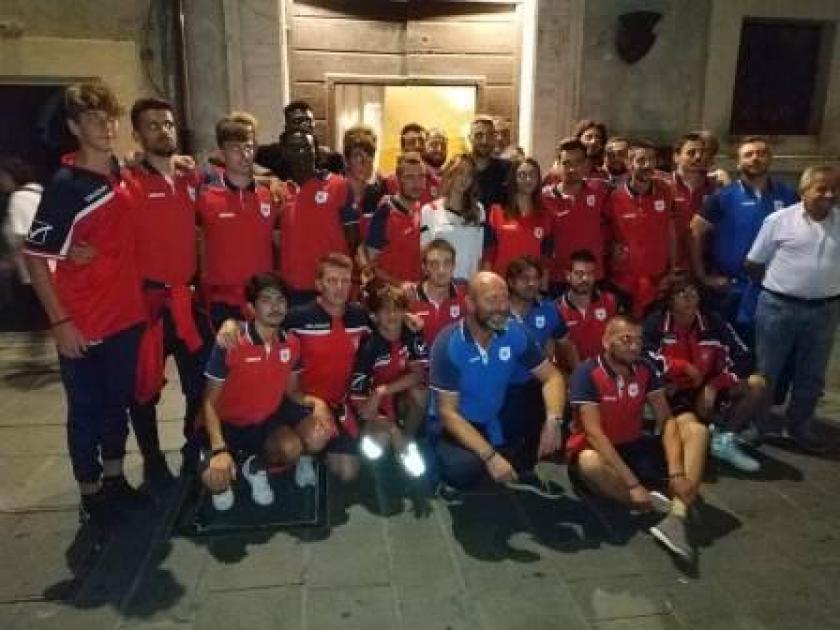 Dopo i saluti del priore della contrada, Francesco Felicioni, che ha augurato il meglio alla squadra biancorossa complimentandosi per aver scelto la propria taverna per questo evento, la 'palla' è passata al numero uno del sodalizio, ovvero il presidente Alberto Trabalza.