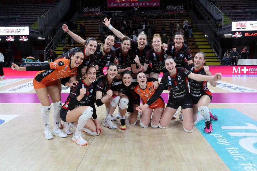 17 marzo 2024. La Bartoccini Fortinfissi Perugia torna in Serie A1 dopo un solo anno di “purgatorio”! Cade l’ultimo pallone al Pala Radi, è un 3 a 0 senza storia in favore delle Black Angels che non lasciano scampo alle padrone di casa della Cremonaufficio Esperia Cremona e centrano con due giornate di anticipo la promozione in massima serie. Il sogno del ritorno in A1, partito a metà agosto con la preparazione, è finalmente coronato nel migliore dei modi. Verrebbe da dire che mai trionfo fu più meritato: 2 sole sconfitte in un percorso che ha visto praticamente solo vittorie per Perugia. L’ultima, appunto, contro Cremona. Un trionfo arrivato con i parziali di 20-25, 11-25 e 17-25. Complimenti a tutte le ragazze, una per una, che hanno dimostrato un carattere di ferro durante l’arco di tutta la stagione, oltre che doti tecniche indiscutibili. Complimenti a tutto la staff che ha lavorato dietro le quinte durante ogni settimana. Complimenti ai tifosi, al seguito in ottimo numero anche in questa giornata. Complimenti poi a tutta la società, capace di costruire un gioiello, ed è proprio il caso di dirlo, che ha permesso di riportare in A1 il volley femminile perugino. La Bartoccini Fortinfissi ha tagliato il traguardo, ma la stagione non finisce qui. All’appello manca la trasferta di Mondovì e l’atto finale al Palabarton con San Giovanni in Marignano di venerdì 29 marzo, per cui tutto il club chiama già a raccolta l’intero pubblico sportivo di Perugia.