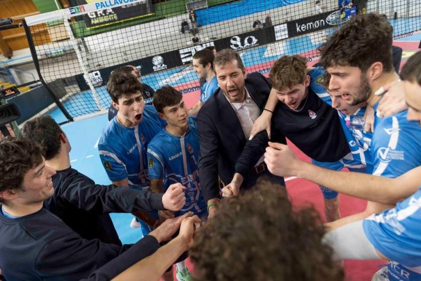 CRONACA - Maria Ilaria Donadi, esordiente da primo allenatore sulla panchina di Trebaseleghe, schiera la diagonale Ignacio Martinez-Cester, al centro Munarin e Rampin, a lato Candeago e Ceolin e libero Amarilli. Marco Bartolini risponde con Biffi in regia, Marzolla opposto, Quarta e Compagnoni al centro, Cappelletti e Favaro in posto 4 e i due liberi, Pochini e Chiella, alternati fra ricezione e difesa. I padroni di casa sono tonici in avvio, tanto che solo ai vantaggi i biancazzurri opereranno il sorpasso decisivo dopo essere sempre stati all’inseguimento; muro su Favaro, primo tempo a rete di Quarta, ace di Munarin e slash di Rampin per il 6-2 d’acchito, che diventa massimo vantaggio per la Sav quando il muro ferma Marzolla per il 9-4. La replica della ErmGroup è comunque immediata, grazie anche a un attacco out di Candeago, cui seguono una veloce di Quarta e il muro vincente di Marzolla che ristabilisce la parità sul 13-13. Equilibrio sul punto a punto fino al break del 20-18 firmato da Cester, che sale in cattedra tenendo i suoi sul +2, mentre l’Altotevere sbaglia troppo dai nove metri. Il colpo lungo linea di Candeago per il 24-22 sembra chiudere virtualmente i giochi, ma c’è da fare i conti con il muro di Quarta: quello su Candeago vale il 24 pari, quello su Ceolin produce il primo vantaggio per 26-25, con il suggello dato dall’ace di Cappelletti, che consegna il 27-25 e l’1-0 a Biffi e compagni. Piccolo break di Trebaseleghe in avvio di seconda frazione: un 3-1 subito neutralizzato dal muro tandem di Favaro, che dà il via alla fuga dell’Altotevere, perché uno slash in palleggio di Cappelletti sigla l’8-6 e da questo momento in campo c’è soltanto il sestetto ospite, che difende al meglio e colpisce in contrattacco sul turno in battuta di Compagnoni. Marzolla c’è, Quarta blocca con il muro a uno Streliotto (preferito al centro a Munarin) e poi ancora Marzolla e Cappelletti, con un lungo pallonetto, piazzano una striscia di sette punti consecutivi che fissa il punteggio sul 13-7. La Sav tenta il recupero, fermandosi a quota 9, prima che la ErmGroup prenda le misure a Cester e riallunghi fino al 16-9. Il margine rassicurante è ben gestito con un Compagnoni implacabile sulle veloci, che garantiscono i cambi palla con regolarità. Il divario resta invariato e Marzolla mette giù il pallone del 25-19 che significa 2 set a 0 per l’Altotevere. Ancora movimenti al centro per i veneti a inizio del terzo set, con dentro di nuovo Munarin e Streliotto confermato. La ErmGroup sembra aver preso in mano la situazione quando i contrattacchi di Compagnoni e Cappelletti la portano sul 9-6, ma Cester è tornato pericoloso e Candeago lo è quanto lui. Pareggio subito agguantato da una Sav, che sulla pipe proprio di Candeago passa a condurre per 14-12; Munarin grazia gli avversari con un primo tempo out (14-14), anche se con il muro su Cappelletti e con l’ace di Ceolin la Sav Trebaseleghe dà un nuovo strappo: Candeago e Cester sono precisi in attacco, Streliotto trova l’ace del 23-19, mentre Cappelletti vede respinta dalla rete ogni sua battuta e quando una schiacciata di Marzolla finisce out, sul 24-20 per i ragazzi di coach Donadi, il ricorso al quarto set appare oramai scontato. Succede invece l’impensabile con un break di 6-0: Favaro promuove la riscossa, Cester sbaglia un contrattacco, poi sul tentativo successivo una miracolosa difesa di Biffi dà il via alla conclusione di Marzolla che consente alla ErmGroup di agguantare anche fortunosamente il pareggio (24-24). Lo stesso Marzolla prosegue il suo turno in battuta e a perfezionare l’impresa sul 26-24 provvedono i muri su Ceolin e Cester. Torna il sorriso in casa Altotevere, seppure composto per le condoglianze al diesse Valdemaro Gustinelli, colpito dal grave lutto.